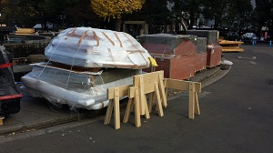 Die Paletten sind eingetroffen und der Aufbau kann beginnen.