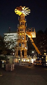 Anfang des Jahres 2015 meldete sich ein Kunde aus Japan bei uns mit dem Wunsch: eine Erzgebirgspyramide für den Weihnachtsmarkt in Tokyo/Japan, angelehnt an die Pyramide auf dem Striezelmarkt in Dresden in Bauform und Höhe. Die "sportliche" Herausforderung für uns - die 14 Meter hohe Pyramide in nur 5 Monaten herzustellen, denn sie soll sich im Dezember 2015 auf dem Weihnachtsmarkt in Tokyo drehen.