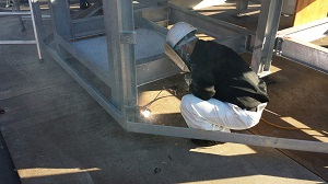 Damit die Pyramide auch wirklich sicher steht, wurde diese mit den Stahlplatten verschweißt. Solang wir schon große Pyramide herstellen, ist dies das erste mal, dass so für Standsicherheit gesorgt wird.